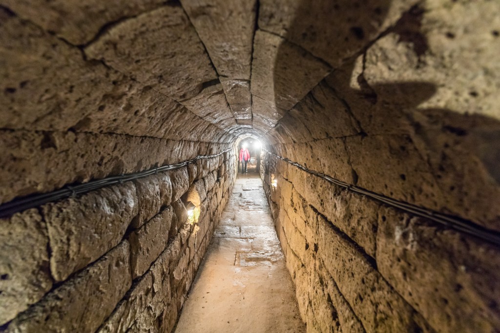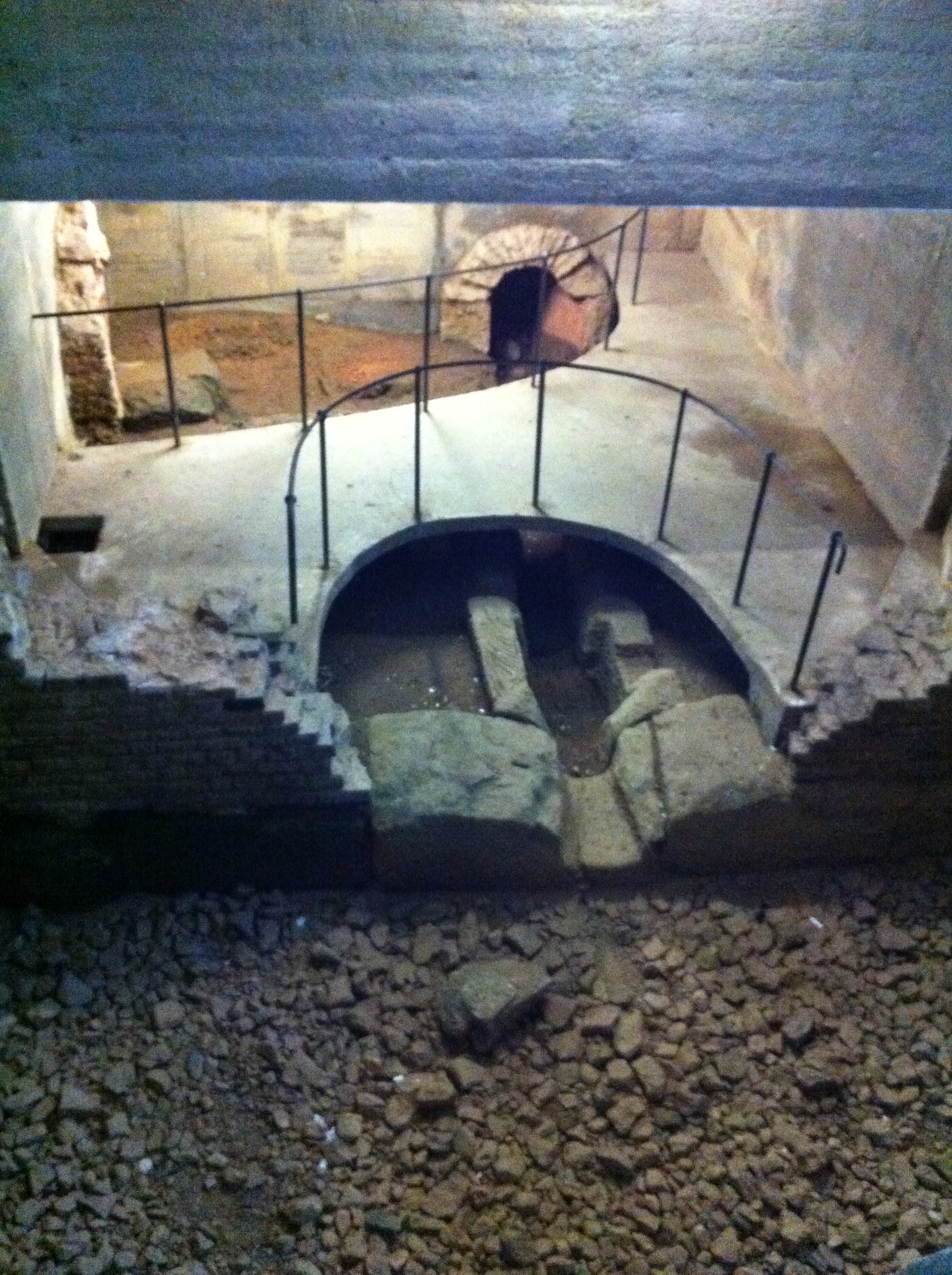 Raised section of the underground Roman sewer. This had to be moved to the surface in order to lay modern water pipes. Picture taken by me in 2017.