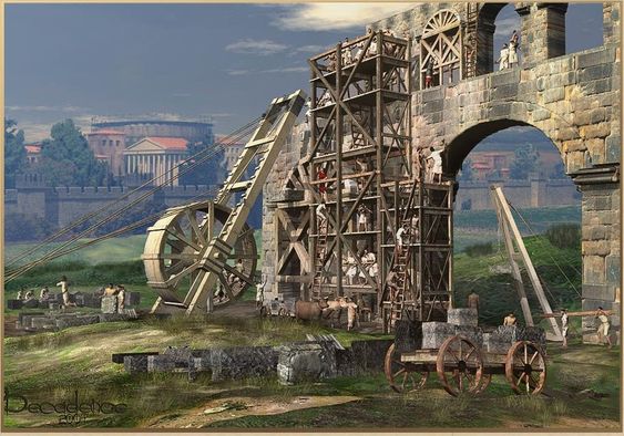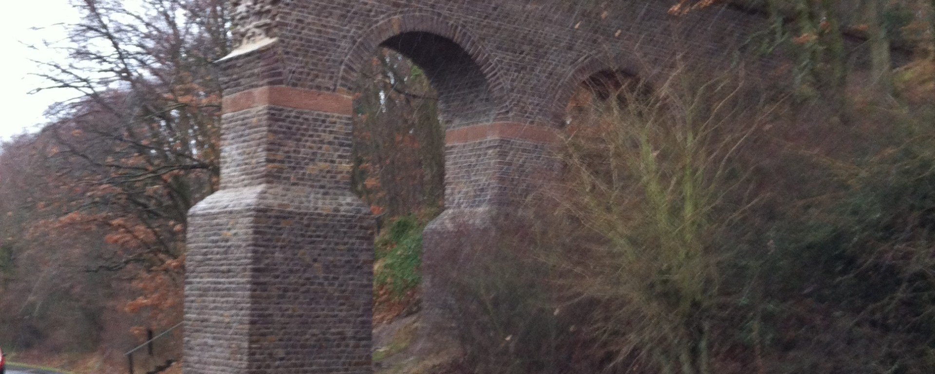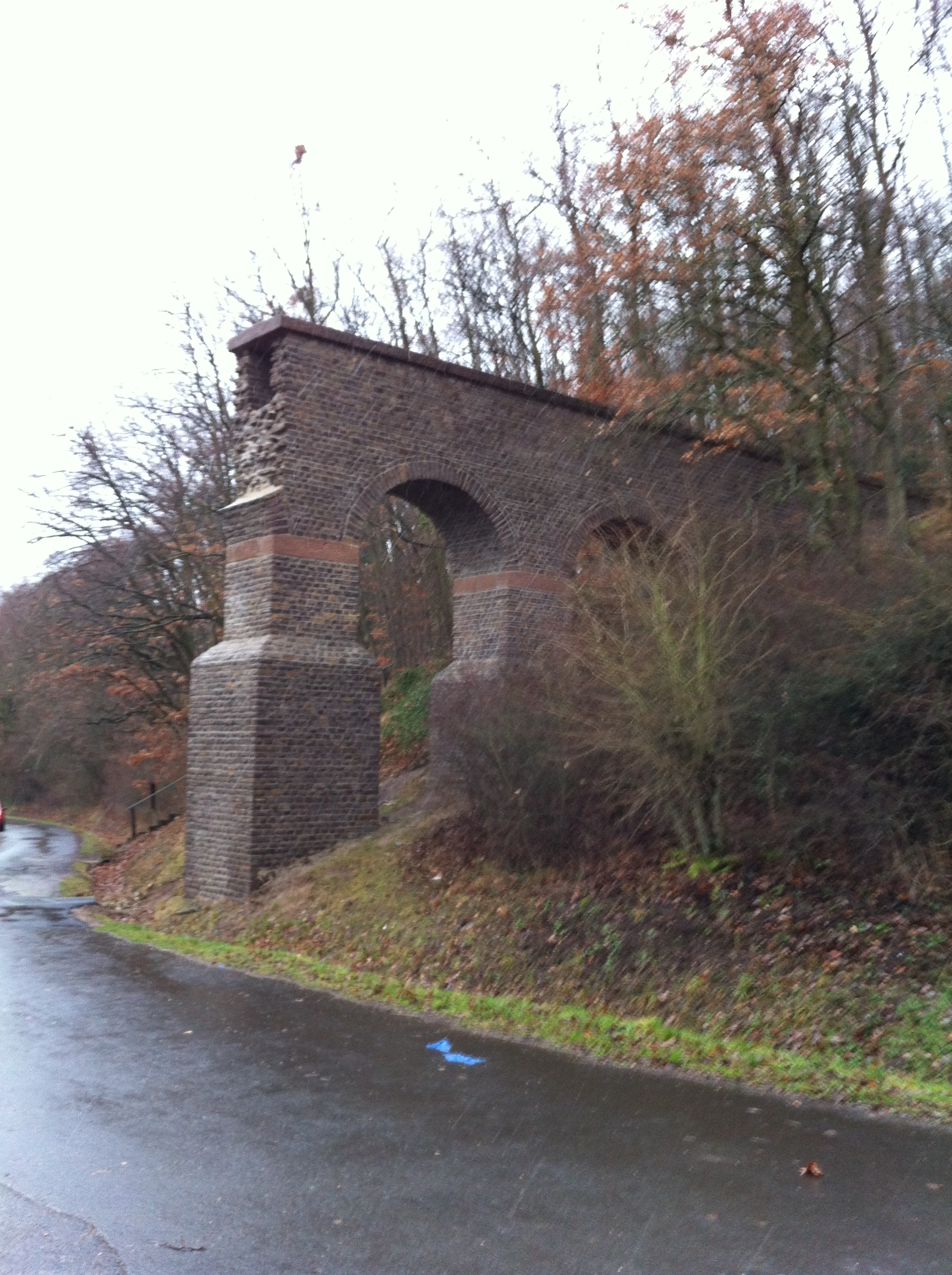 Reconstruction of the Roman waterline bridge near the town of Mechernich in the low mountain range Eifel. The Picture taken by me in 2012.One of many sinking bassin of the waterline. Here sediment could sink to keep the water clean and free of dirt. The Picture taken by me in 2012.Collecting basin of the waterline somewhere in the Eifel. As you can see there are several connections to maintain a high flow of water. The stones on the ground were left on purpose. They were meant as filters to keep the water clean. The Picture taken by me in 2012.Another distributing and collecting bassin from above. Like most parts, the Roman waterline went underground to prevent the water from freezing in winter. The Picture taken by me in 2012.