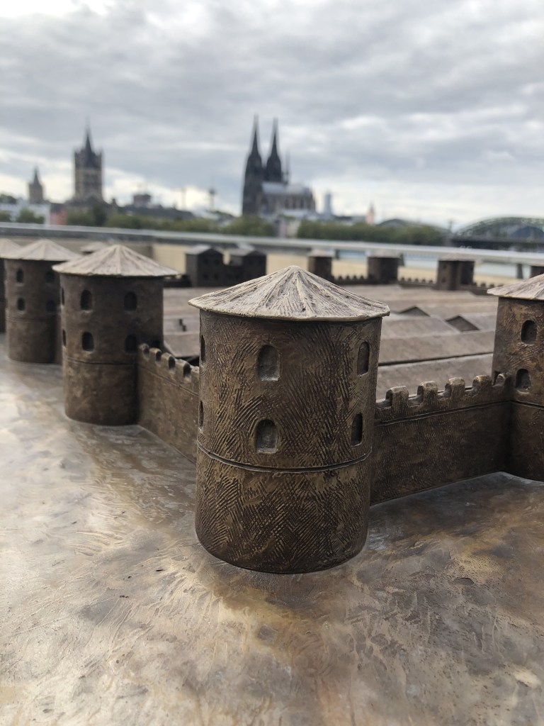 Little bronze replica model of Fort Deutz at the historical place where the fort once stood.