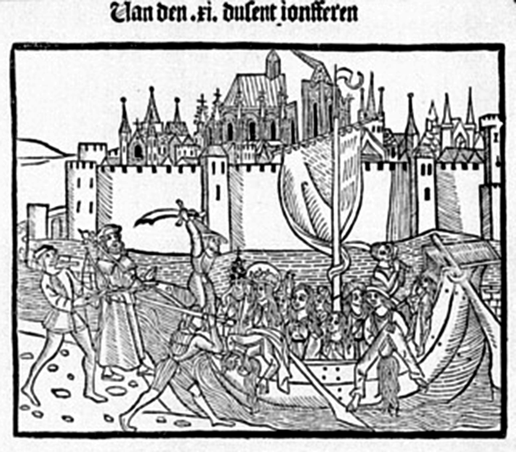 The Maryrium of St. Ursula in a woodcut from 1499.