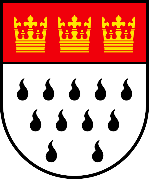 The small coat of arms of the city of Cologne. With the 11 tears / flames / ermine tails representing the martyrdom of St. Ursula.