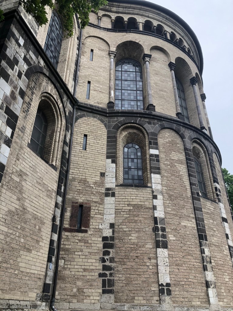 Eastern side of St. Kunibert to the Rhine river with a giant apse. The church building, however, is a new construction from the 13th century, which replaced the 7th century church built by Kunibert. Which makes it still 800 years old.