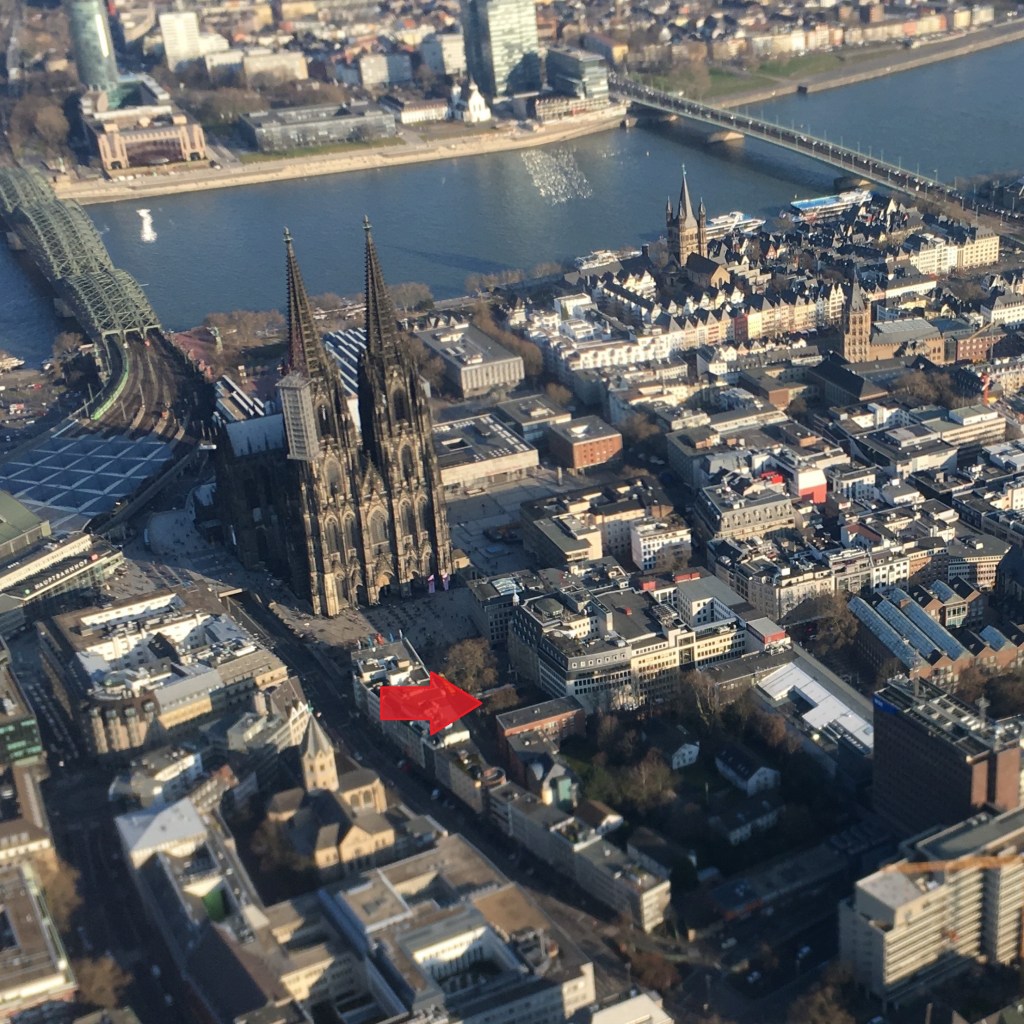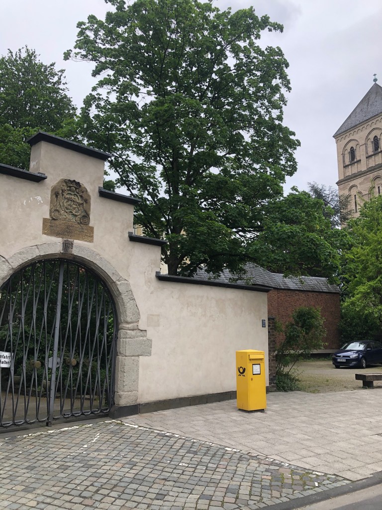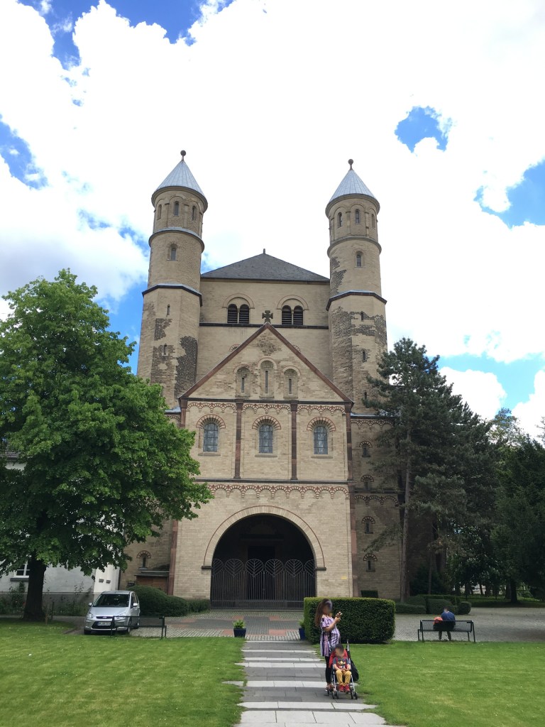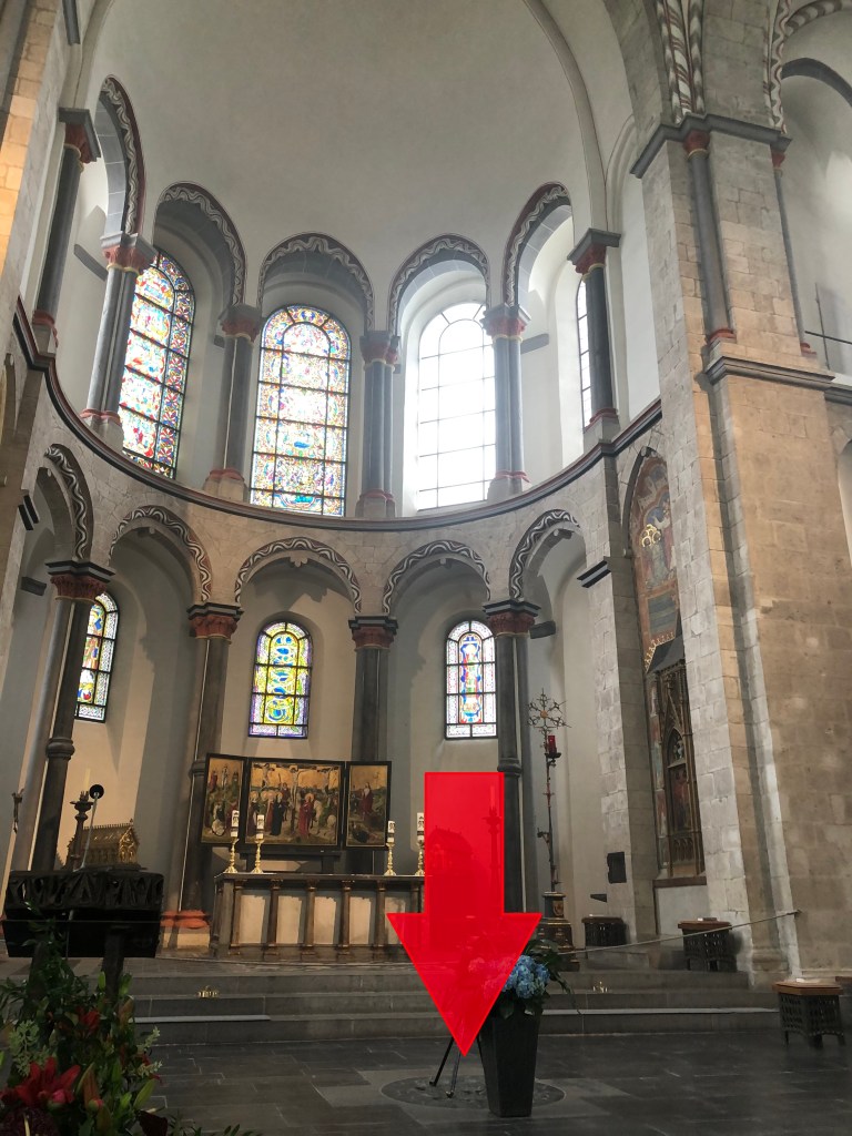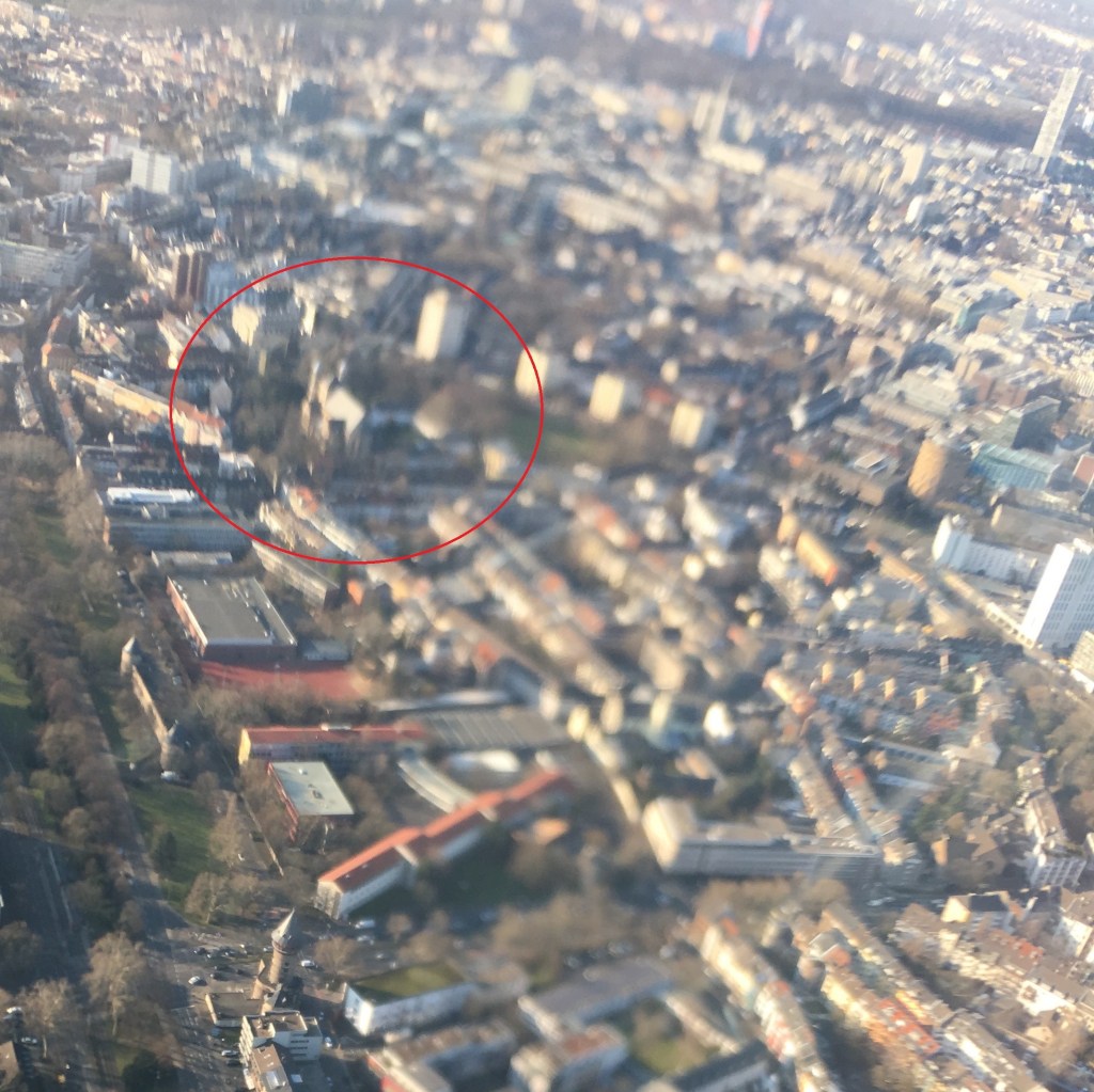 Here, too, the church building was rebuilt in the 10th century, replacing its Merovingian predecessor. But that also makes this church building over 1,000 years old! As one of the few churches in Cologne’s city center, the church grounds of St. Pantaleon still convey quite the air of the Middle Ages. The monastery walls are completely preserved and separate the dense development of the city center in favor of wide lawns and natural areas within the former Benedictine monastery grounds. (red circle) Sorry for the blurry picture. But taking photos out of a flying airplane ain’t easy. 😉