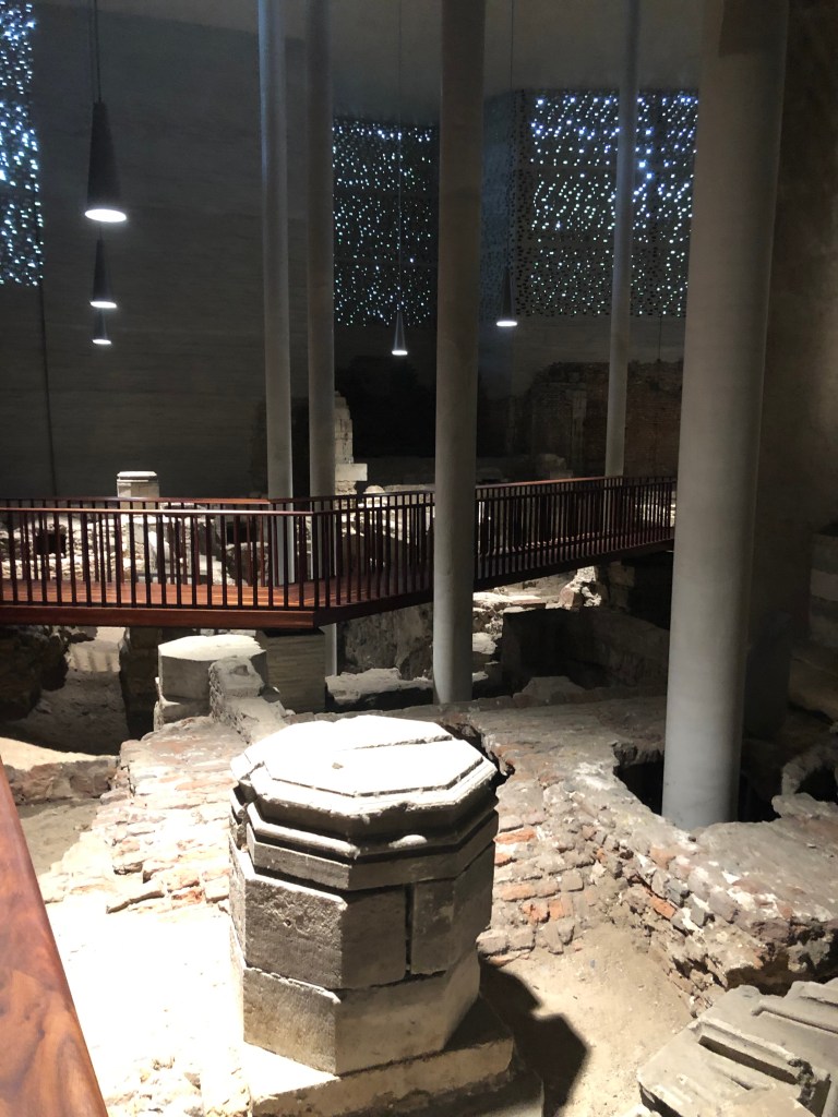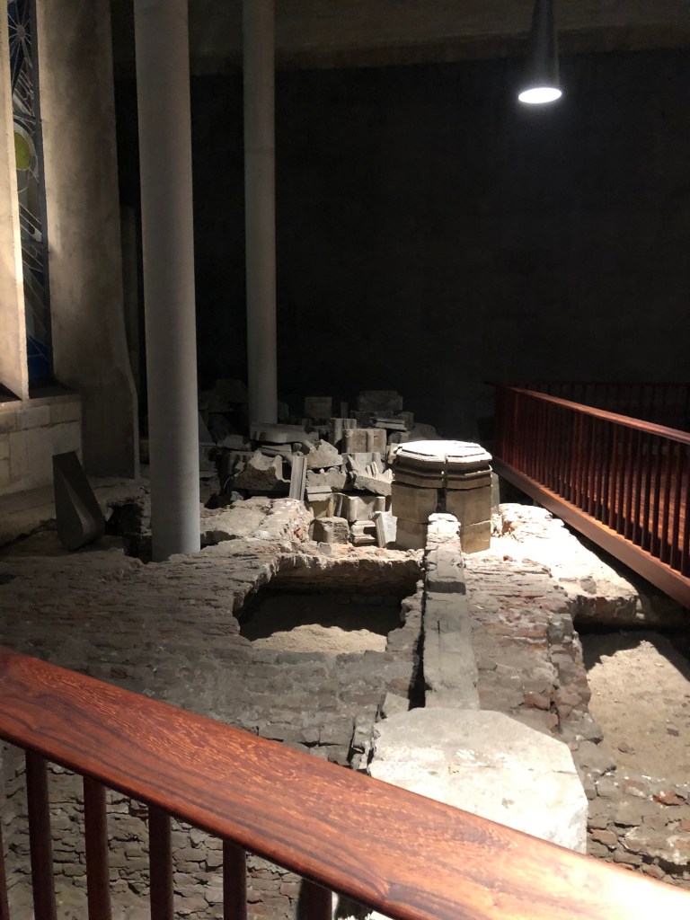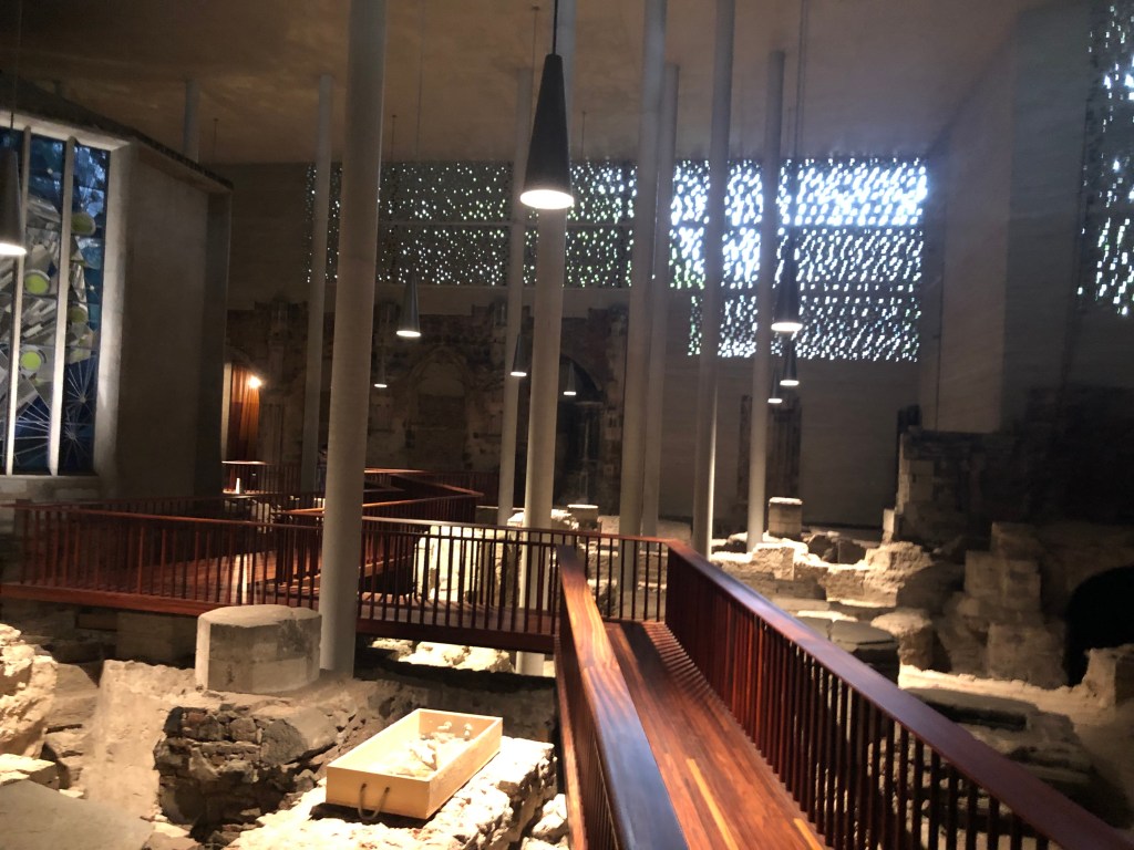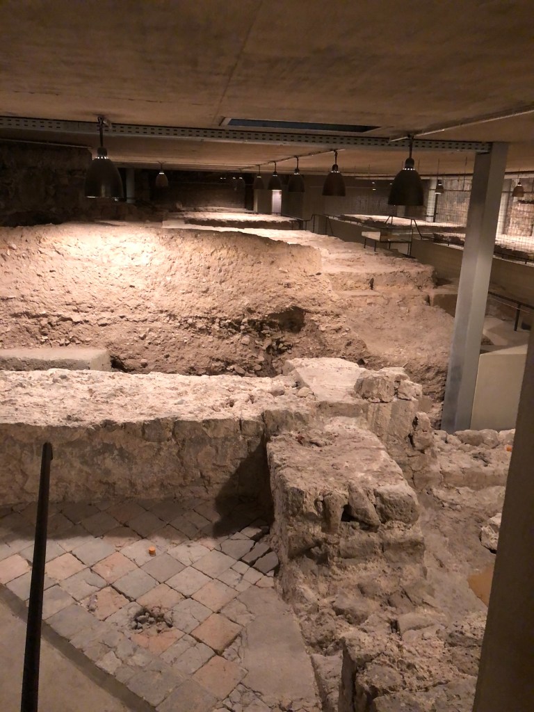 Archaeological Zone right beneath Cologne Cathedral. Yes, the giant gothic cathedral is right over my head here. The prestressed concrete ceiling prevents the floor in the cathedral from falling on my head. 😀
