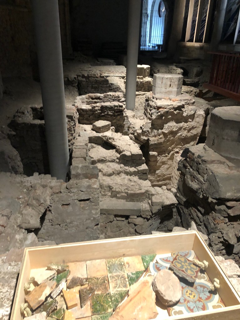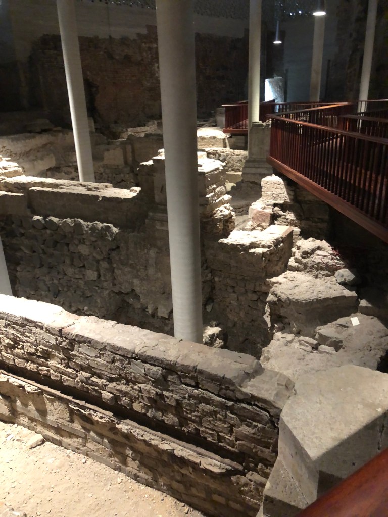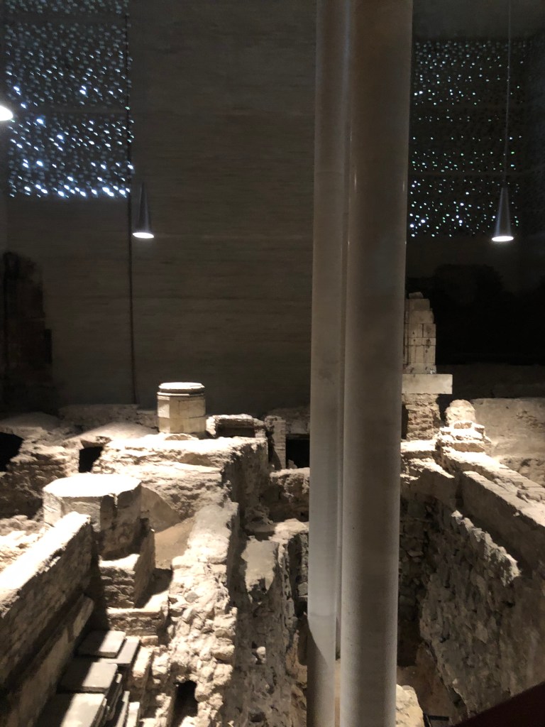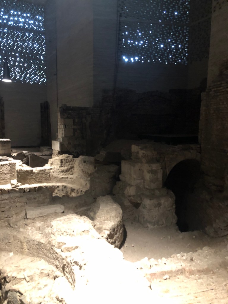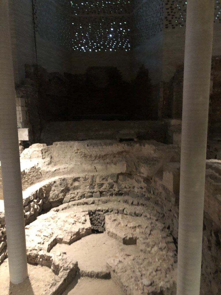 Archaeological Zone right beneath Cologne Cathedral. Yes, the giant gothic cathedral is right over my head here. The prestressed concrete ceiling prevents the floor in the cathedral from falling on my head. 😀