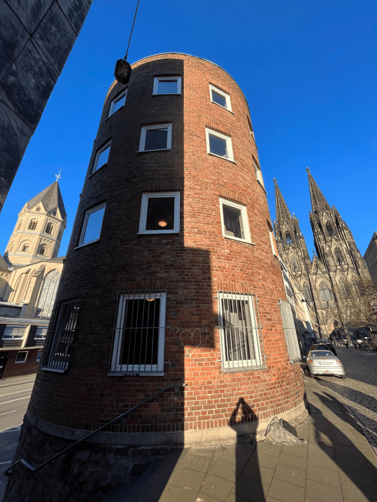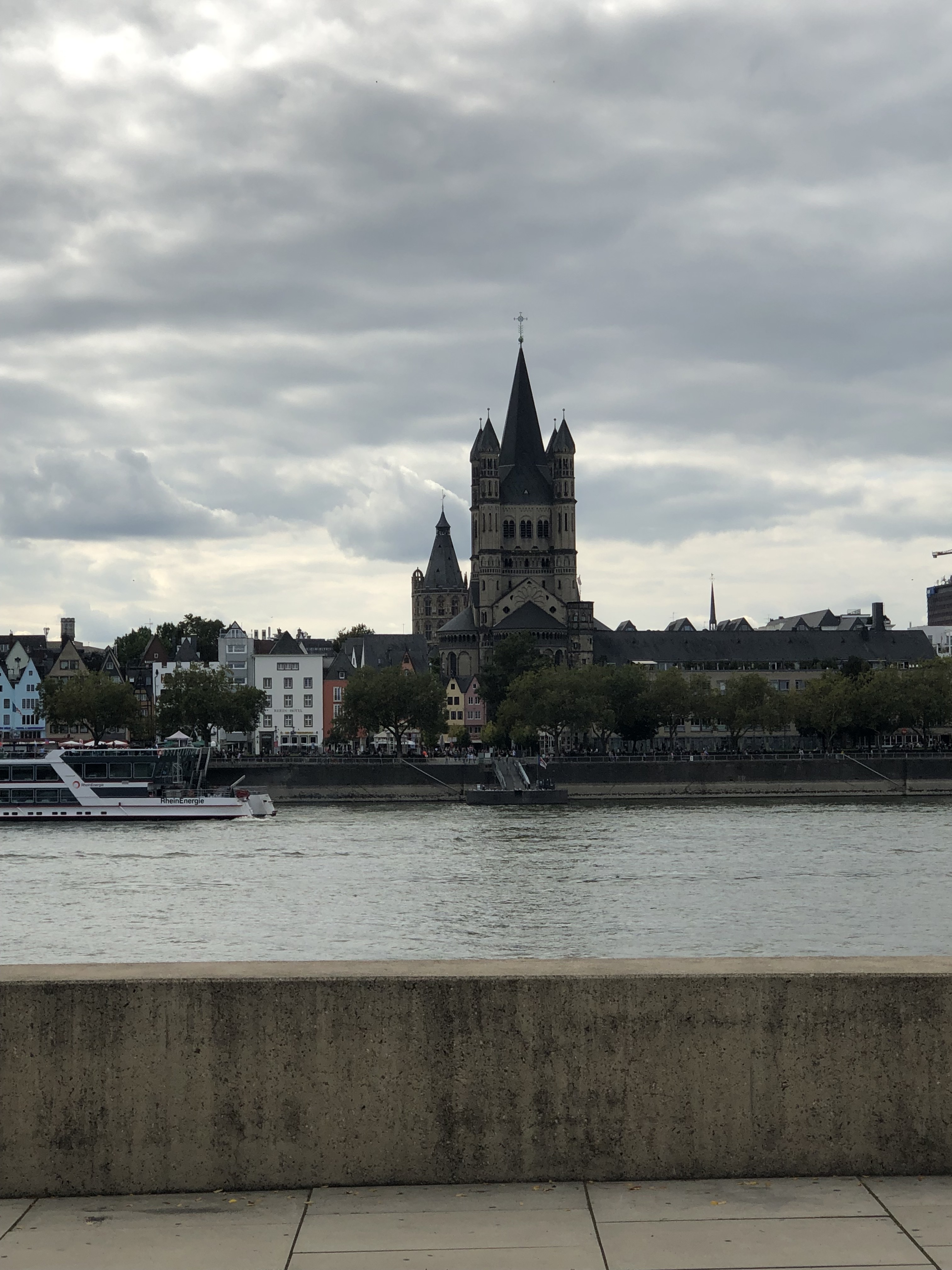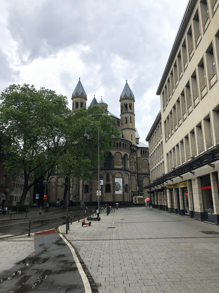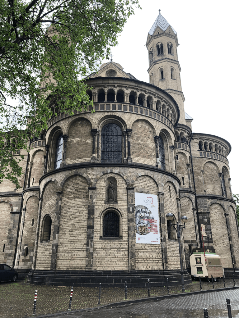 The Martin’s Quarter, known after the large basilica “Great St. Martin), here the huge church in the foreground, already existed since late antiquity on the area of a silted-up branch of the Rhine. Only in the 10th century under Archbishop Bruno, the area was incorporated into the city and later secured along with a wall extension to the river side. Nowadays, interestingly enough, many consider this quarter to be the actual “old town”. This is due to the fact that especially here the old street structure and especially a historicizing architectural style of the early 20th century has been preserved.