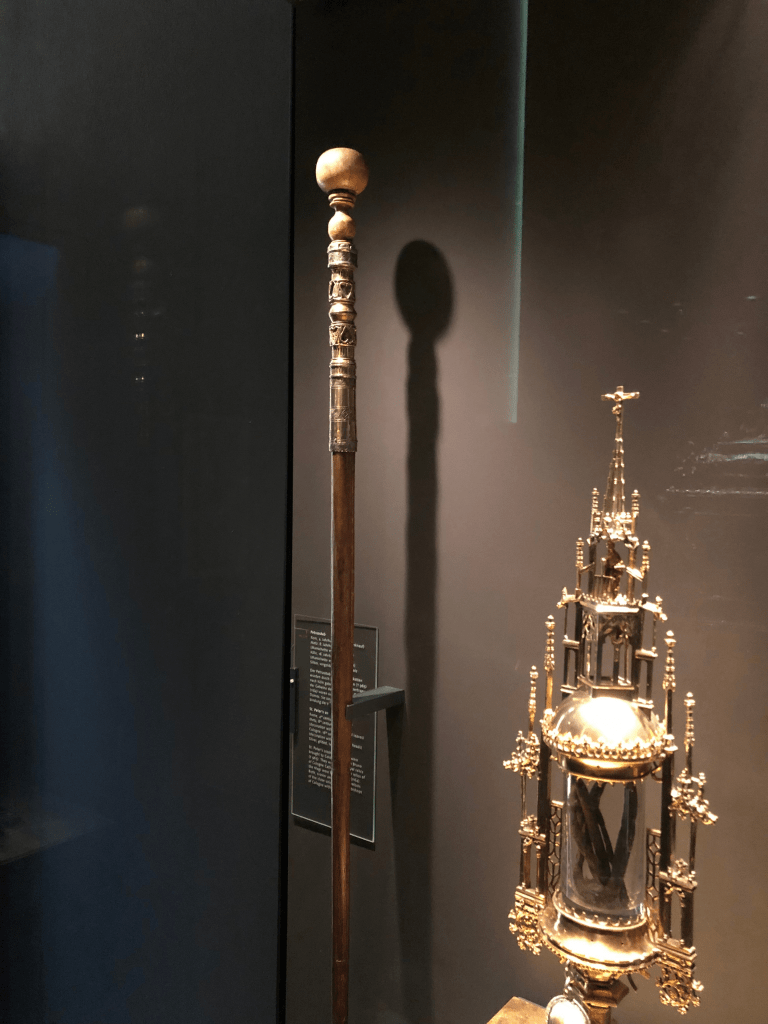 This staff, inconspicuous at first glance, is attributed to St. Peter. It was the most important relic before the Magi came to Cologne in the cathedral. The staff is really ancient, but from the 4th century. Nowadays you can see it in the cathedral treasury. As I did recently.