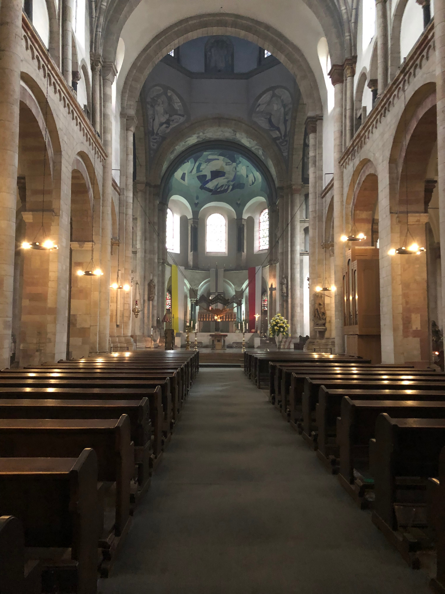 The mighty west wing of St. Pantaleon that was also added in the late 10th century. From up there, the German emperors of the Middle Ages looked down on the service and the “other” worshippers below. Nowadays, among other things, a young Bible study group meets there once a week. Picture taken before the renovation.