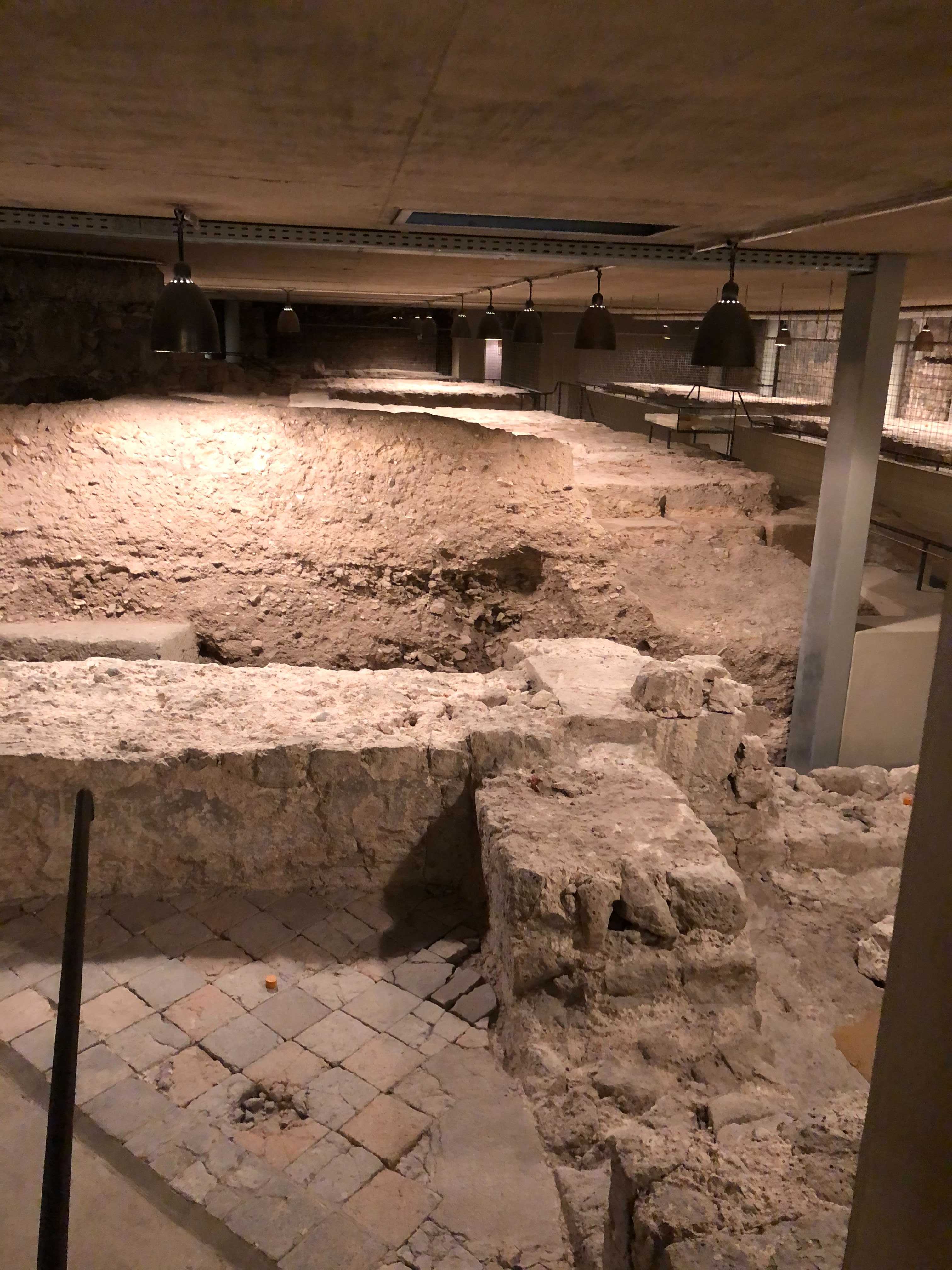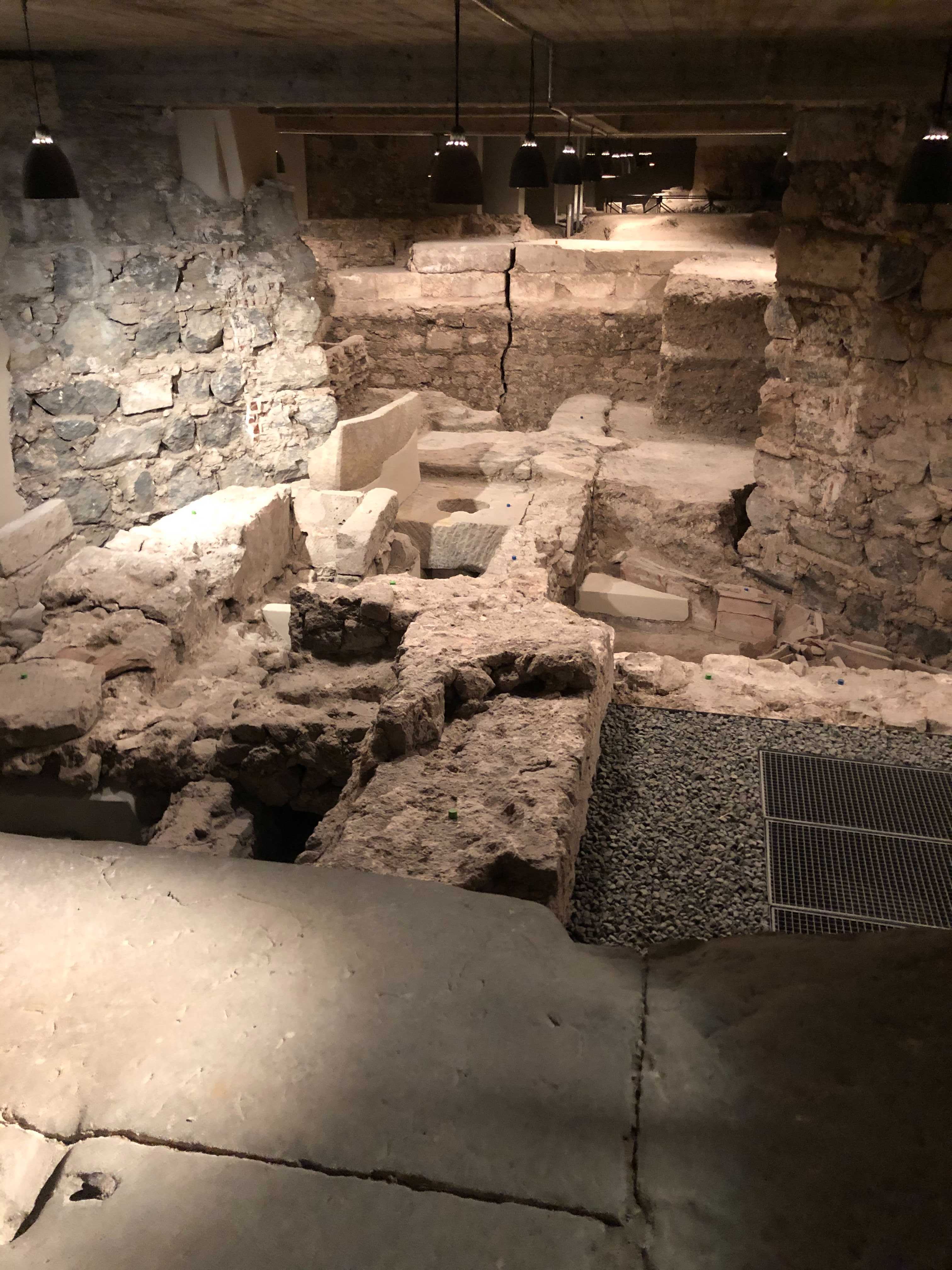 Today’s Heumarkt square facing northwest. In the background you can see behind the trees the medieval city hall (that did not exist in the year 1000) and in the background today’s gothic Cologne Cathedral. Back in the year 1000 you would have cleary seen the Old Cathedral. See how in the middle of the square a row of houses cut through the square. Dividing the once big square into two.