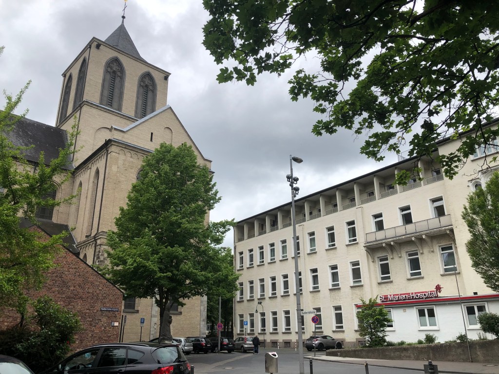 Here once stood the Roman fort Divitia from which today’s district of Deutz developed. On the foundation of the fort, the Archbishop of Cologne Heribert would found a monastery in 1003. This still stands there today. Today, its walls are home to a retirement home. The small parish church is nowadays a gift to the Greek Orthodox community.
