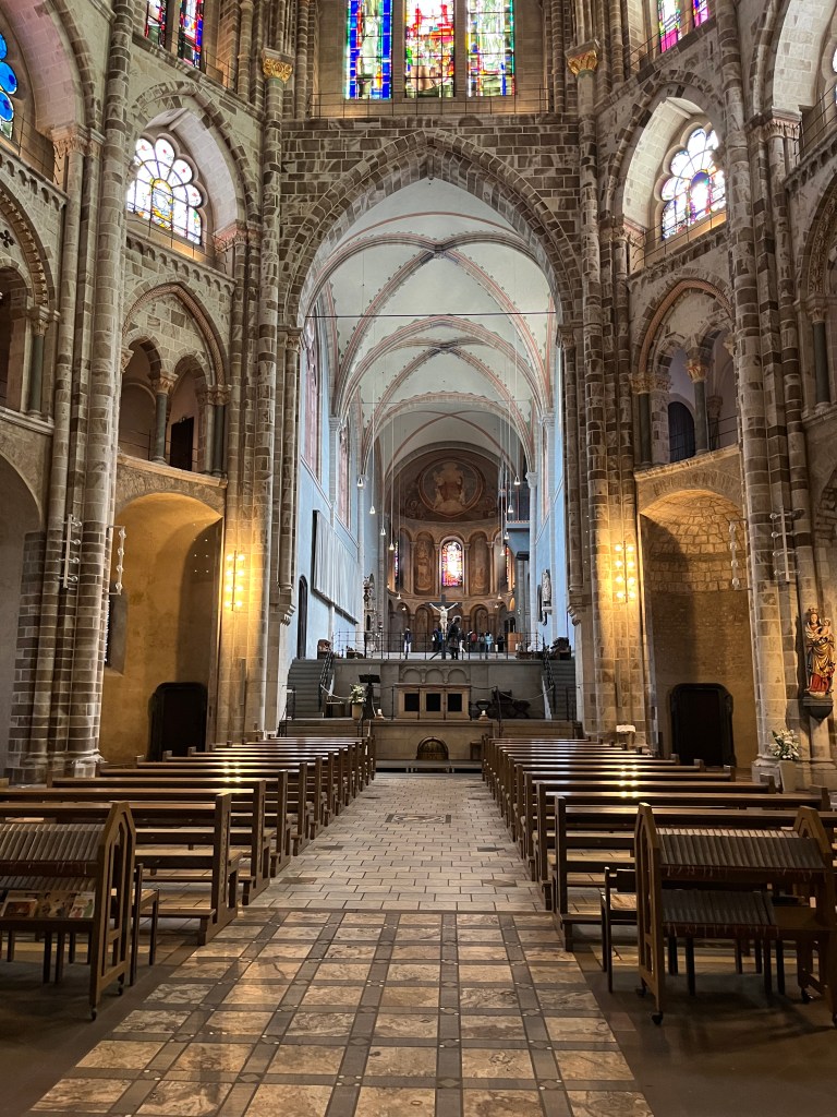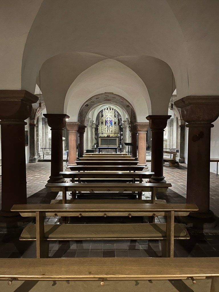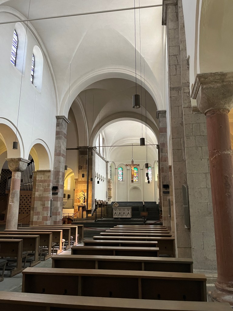 Look into the central, ancient building of St. Gereon that was built in the 4th (!) century and extended further. In the back you can see the elongated choir that Anno added. Later, for example in the 12th century, it was extended again to its present form.