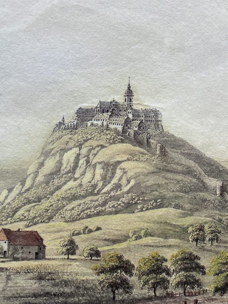The monastery around 1800, colored copper engraving