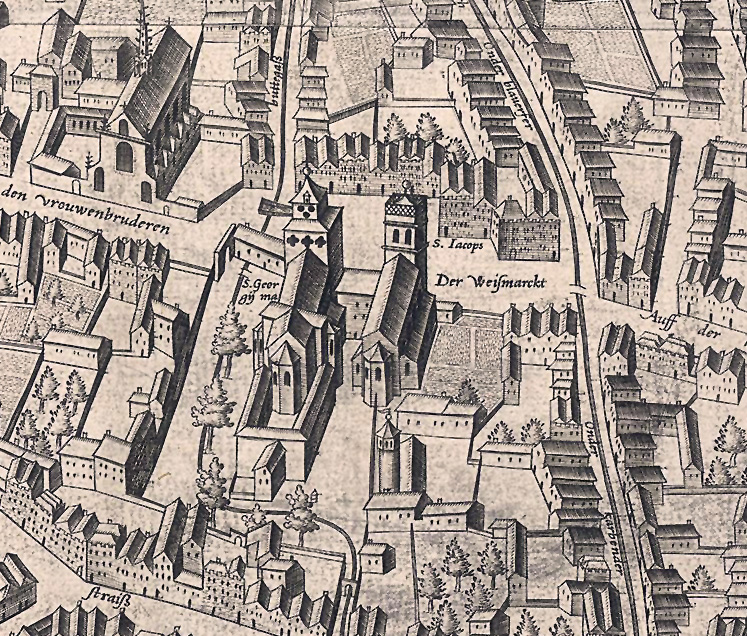 St. George and the neighboring parish church St. Jacob on the Mercator Map from 1571.