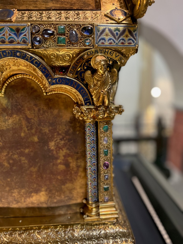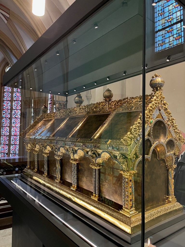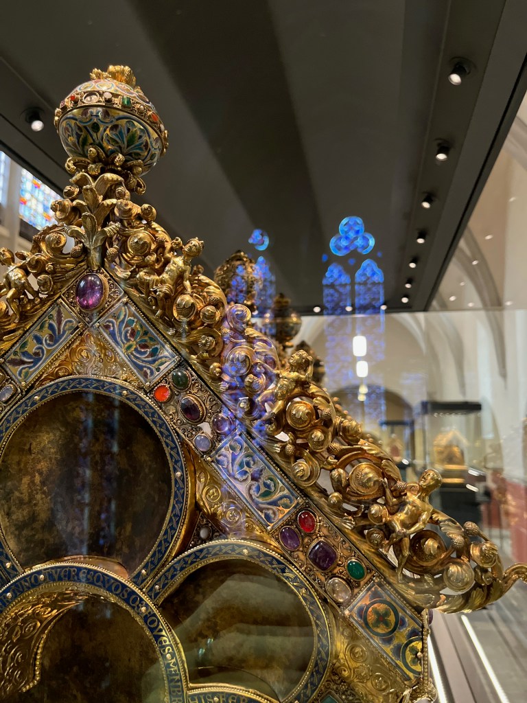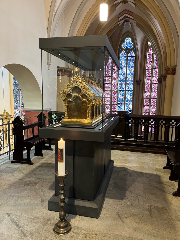 Nowadays you can see the Anno shrine in Siegburg in the parish church of St. Servatius. There is a small but really fine and well-equipped treasury. I’ll put a link to it in the show notes. By the way, the entrance is free, but donations are of course welcome. I had in any case in the summer vacations there a great spontaneous private tour, because the nice supervisor there really explained everything to me. That was really great. Thanks again and sorry I forgot your name.