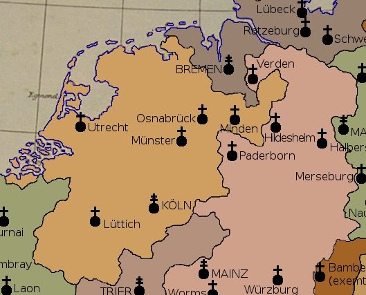 The Cologne (KÖLN) Church Province and its suffragan bishoprics.