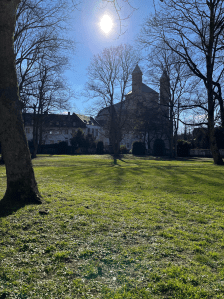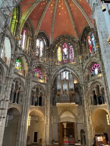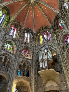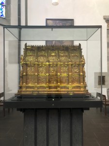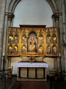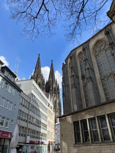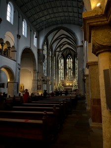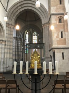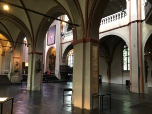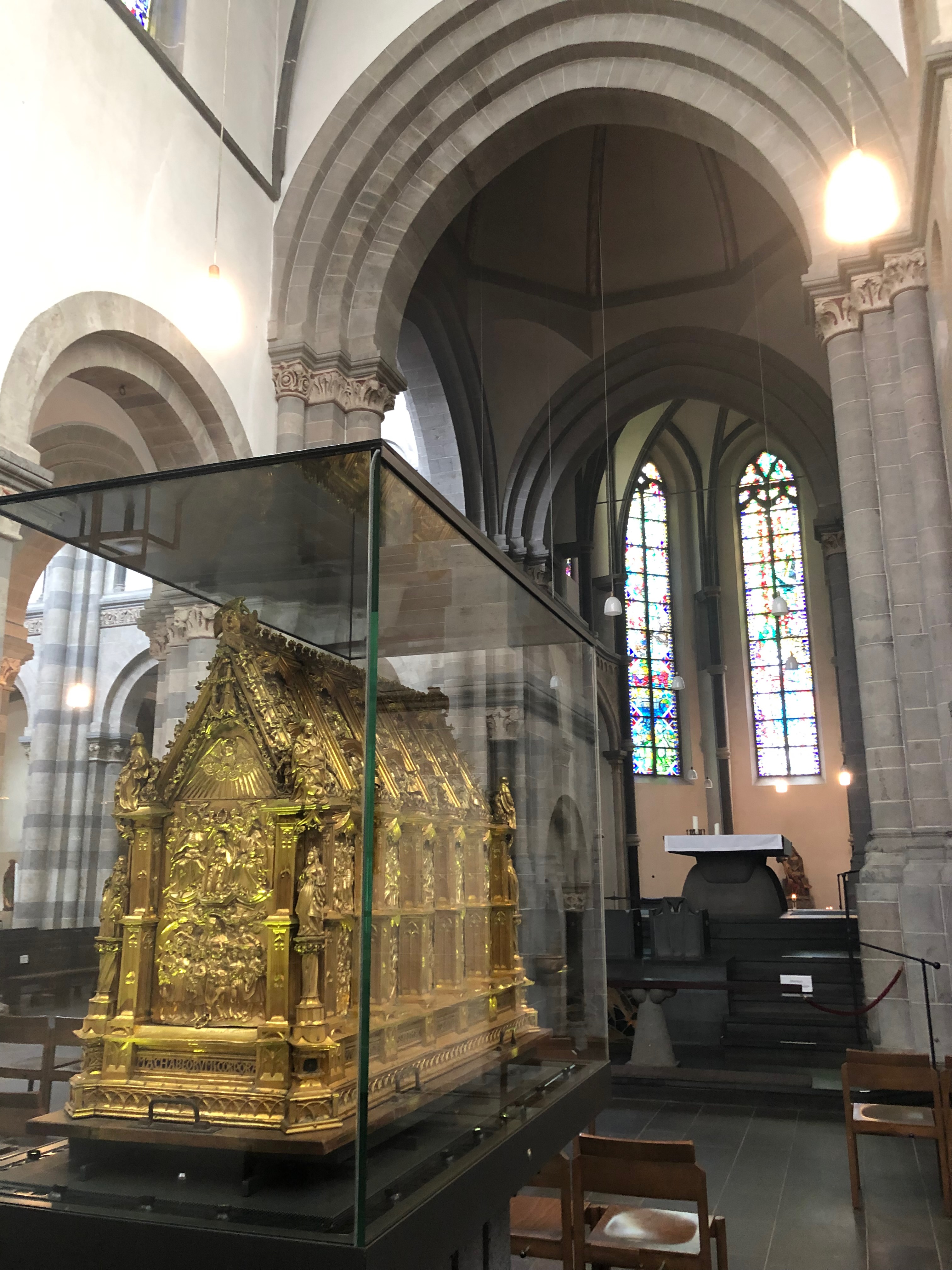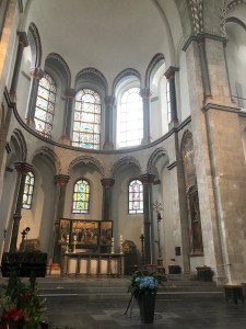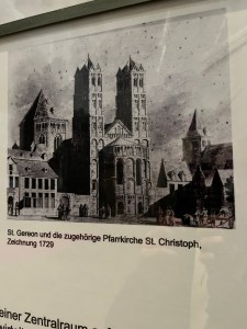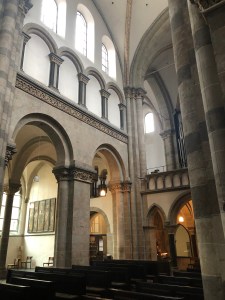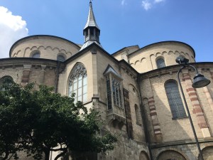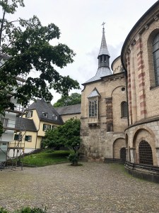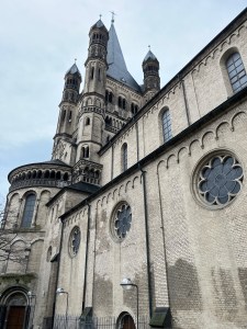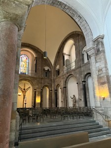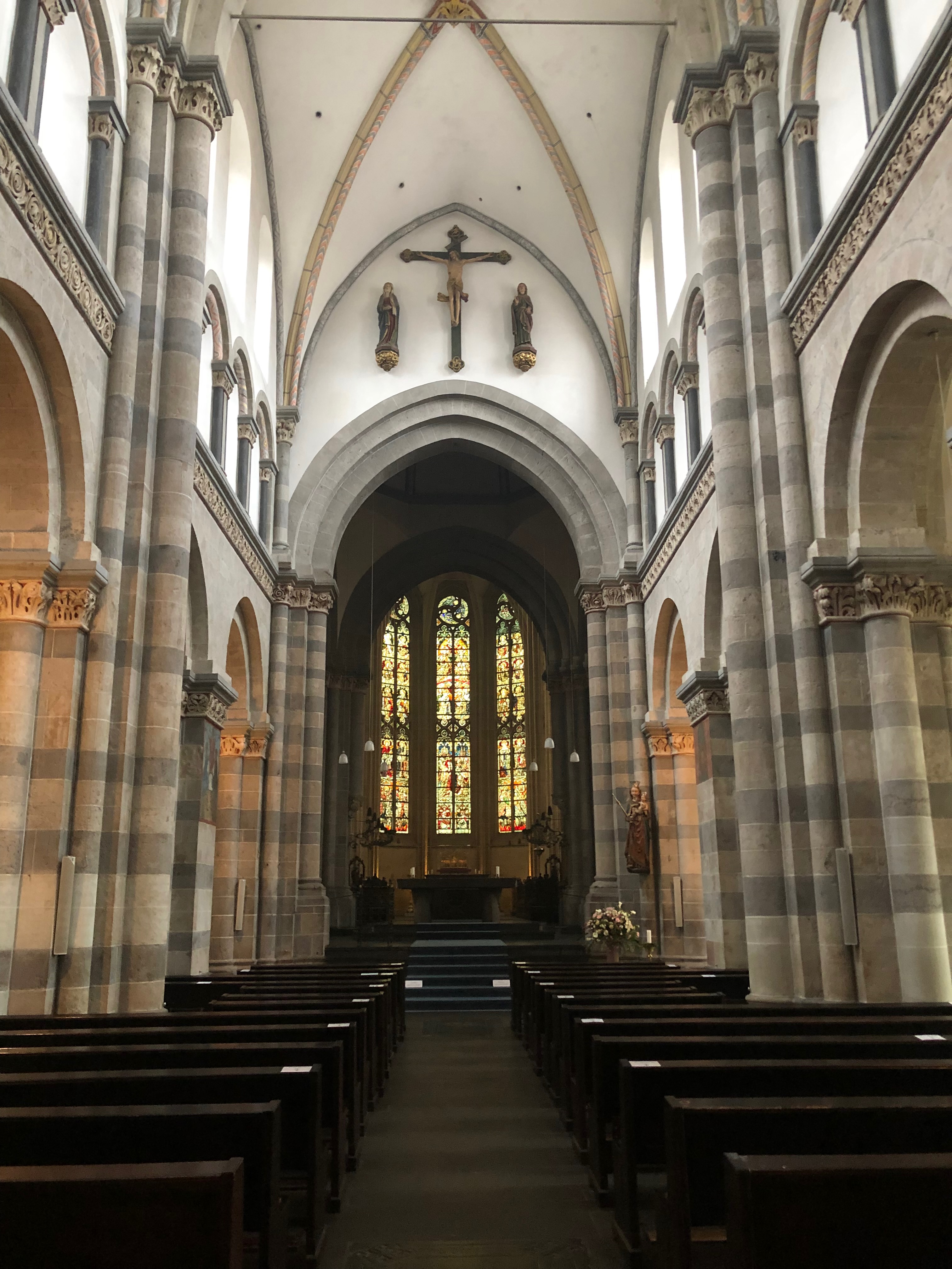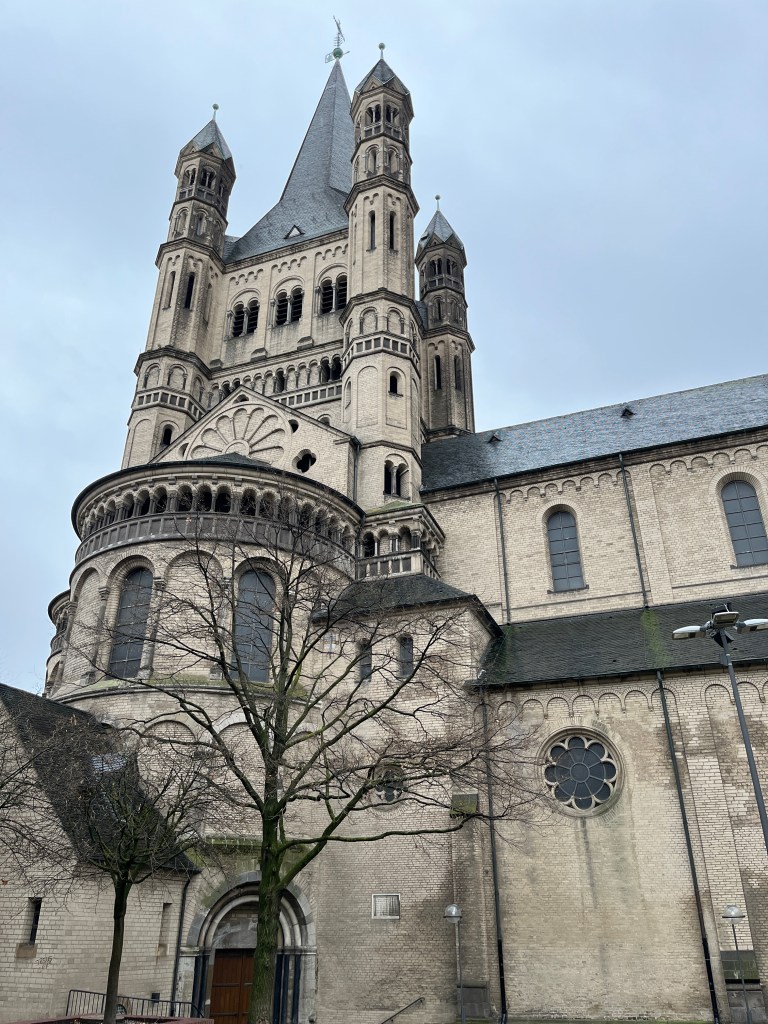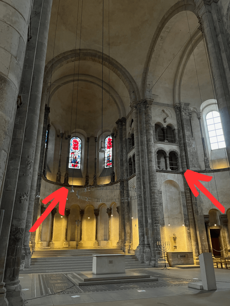A so-called triforium in Great St. Martin. This was later also adopted from Gothic cathedrals. Anyone who has taken a guided tour of Cologne Cathedral up to the roof will also have walked along the triforium. If you think to yourself, phew, pretty tight here, it should be clear that these were originally a purely ornamental element. And not to lead groups of curious tourists along here.