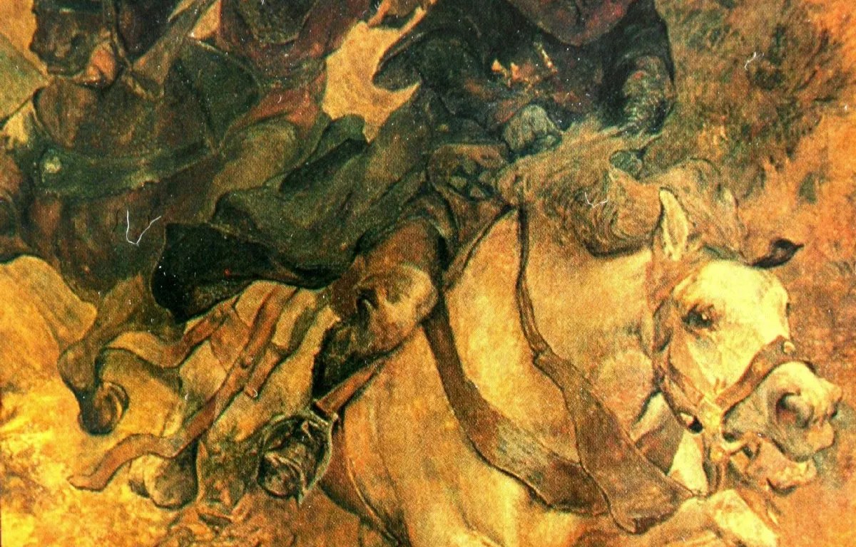The attack that would lead to Engelberts death by Friedrich of Isenburg in 1225. Not a contemporary depiction, it was painted by Claus Meyer in 1900.