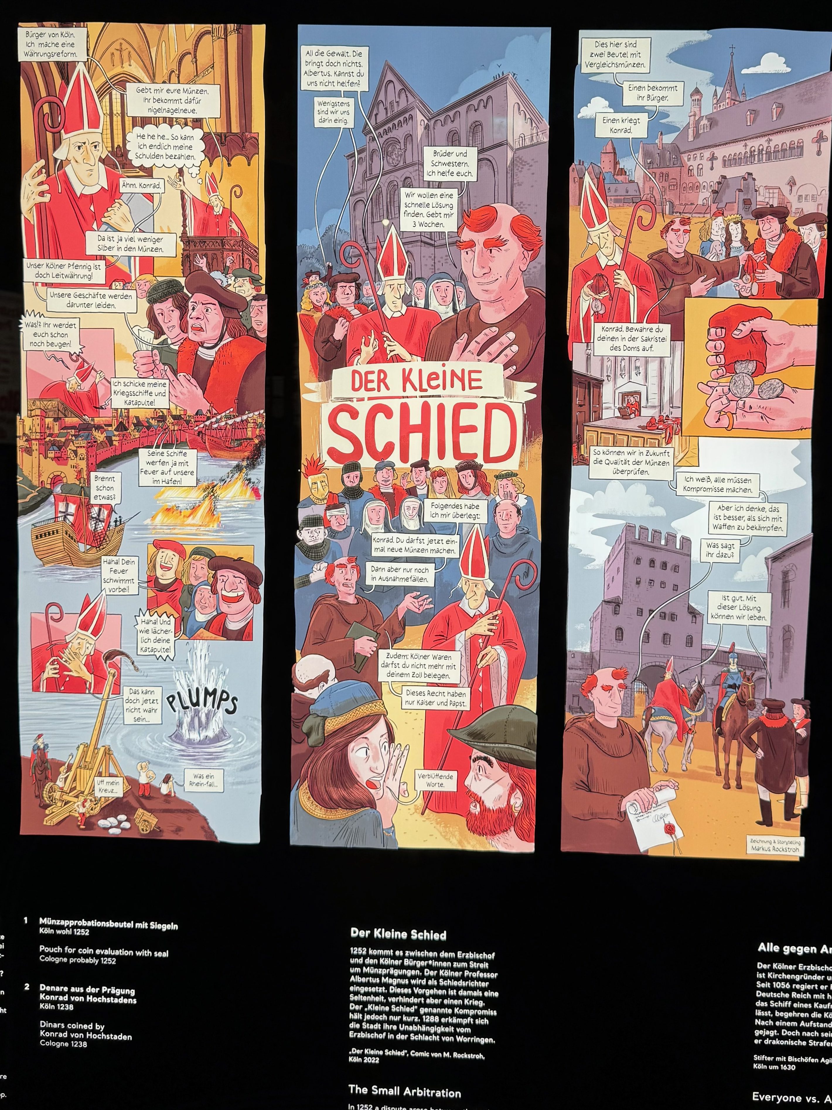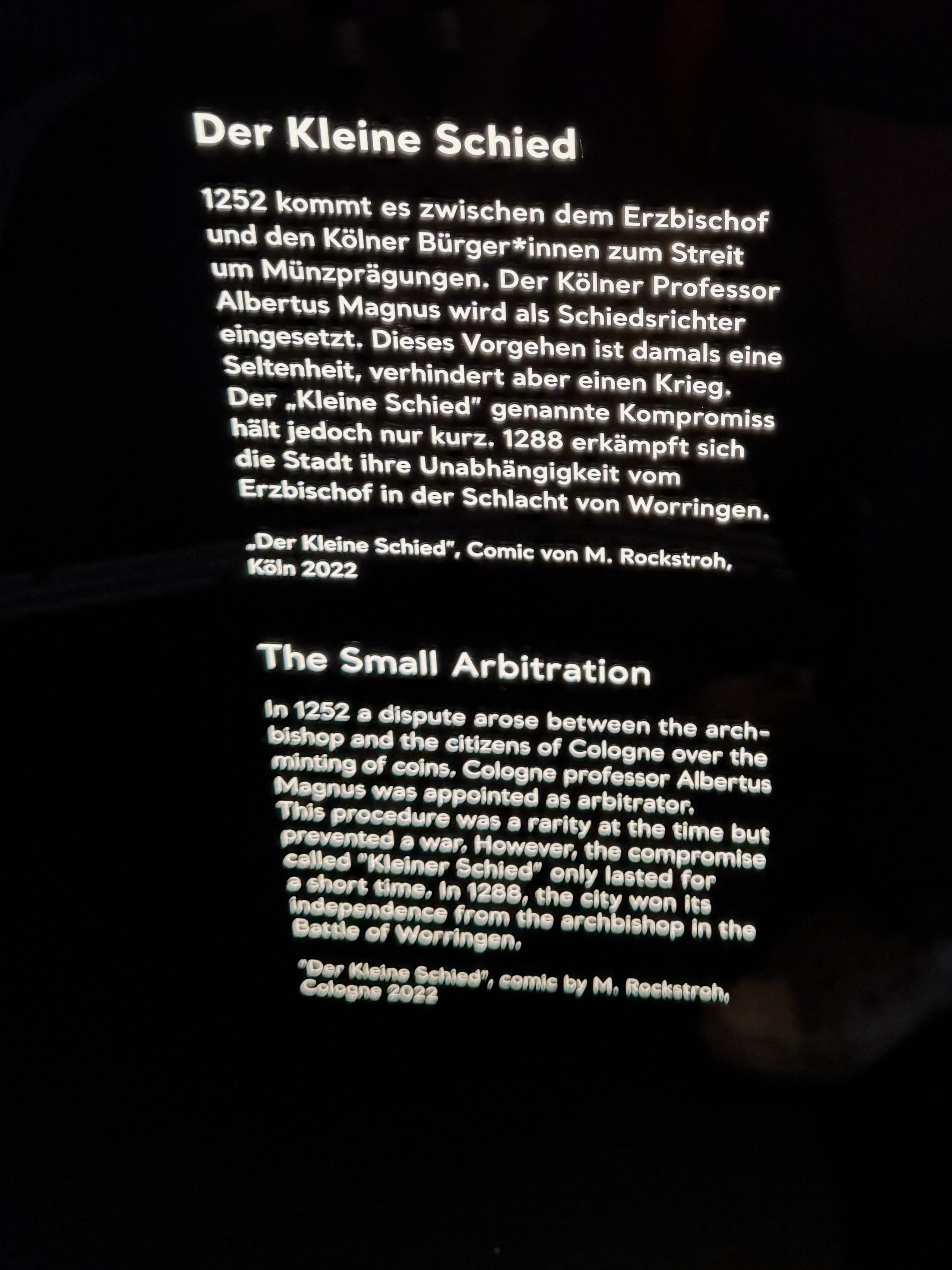 The Cologne City Museum (Kölnisches Stadtmuseum) even has a comic that explains the whole conflict around The Small Arbitration (Der Kleine Schied) Can you spot the Trebuchet firing at Cologne? 🙂